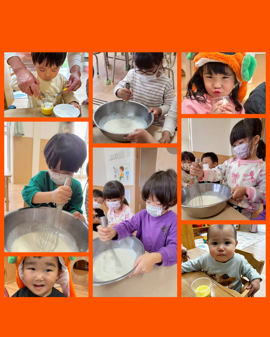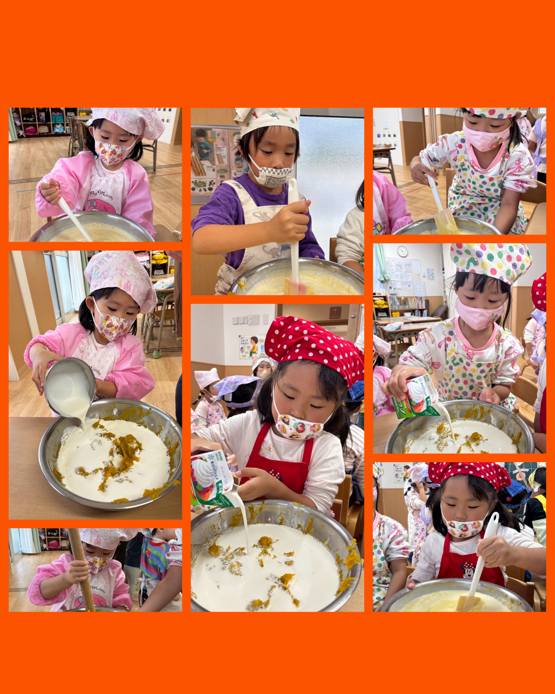 昨日はハロウィンでしたがどのように過ごされましたか?あおぞら保育園ではみんなでかぼちゃプリンを作りました