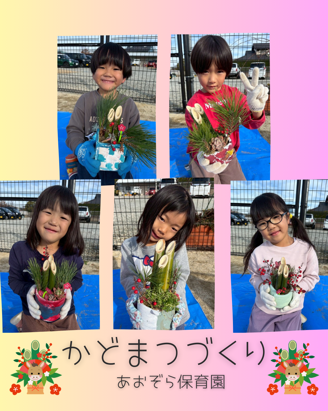 早いもので今年も残すところあと少しとなりました今日以上児さんは門松づくり🎍をしました